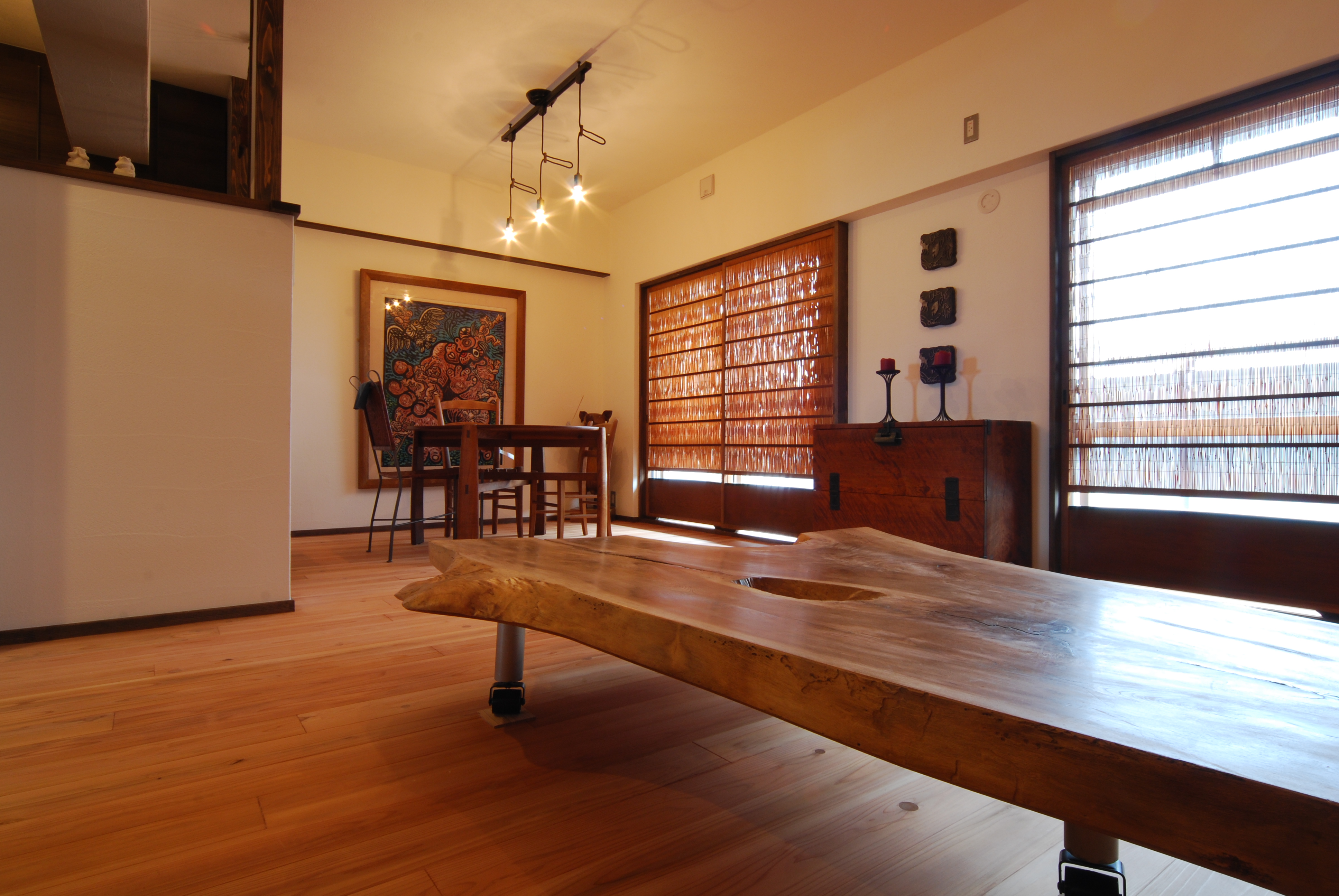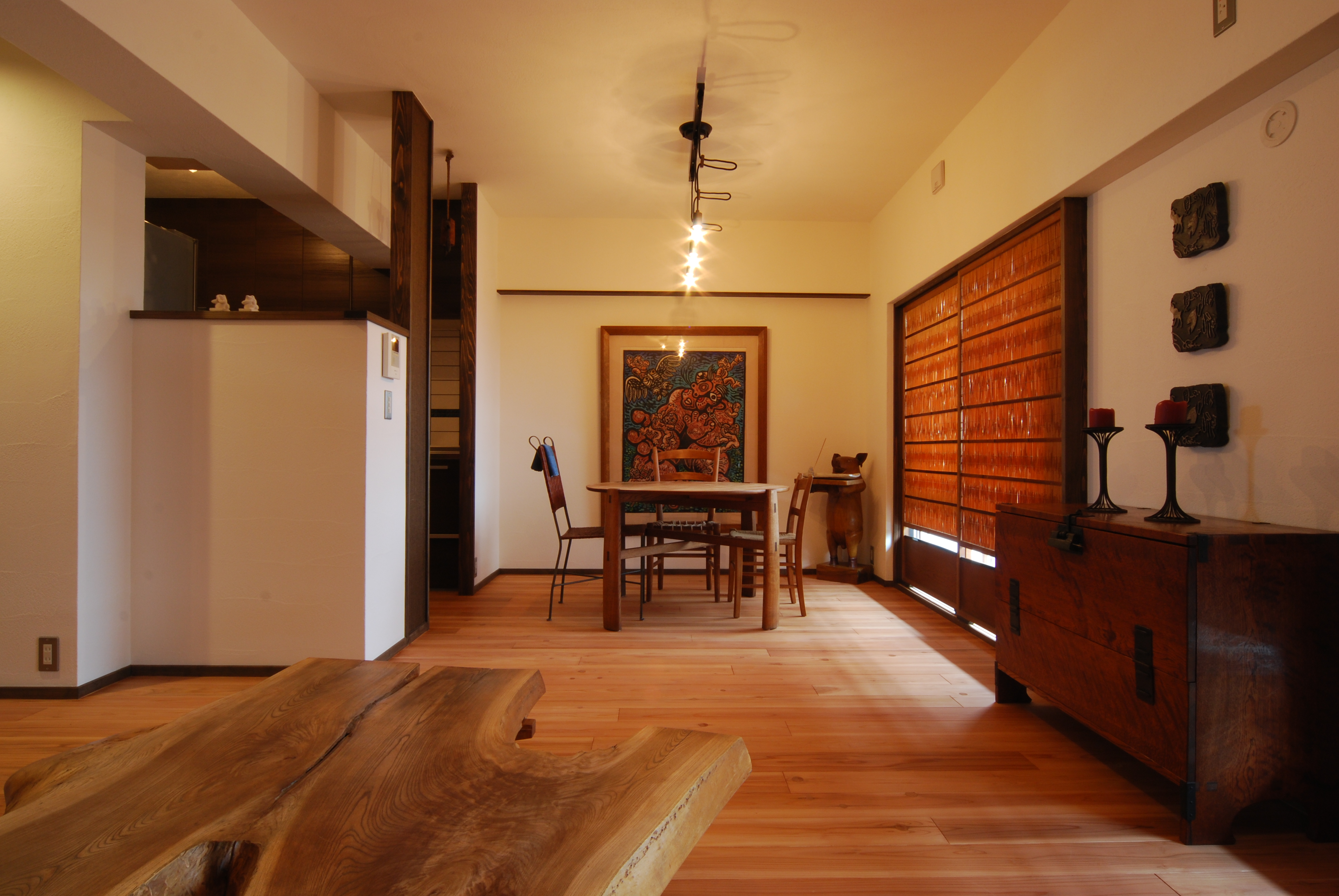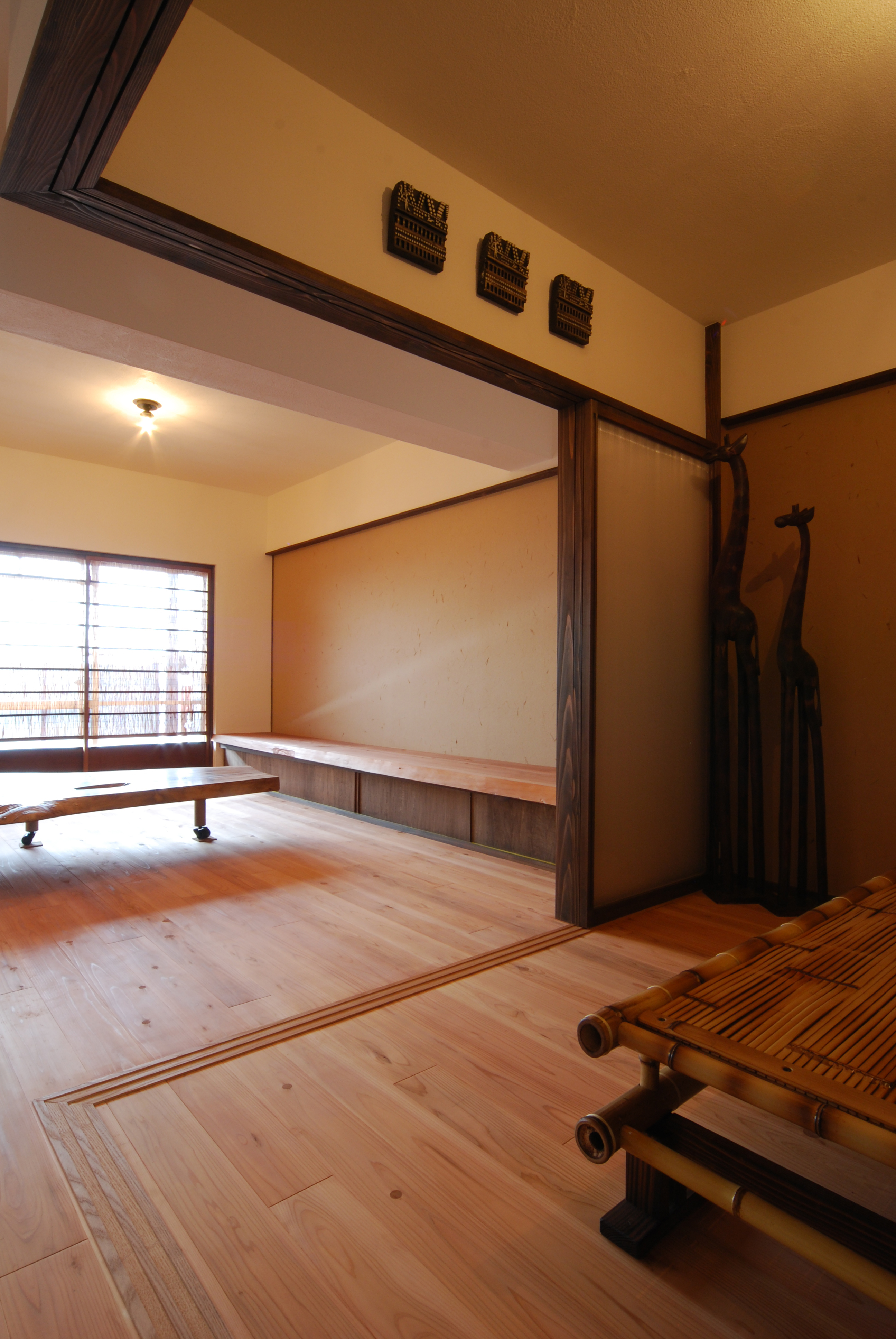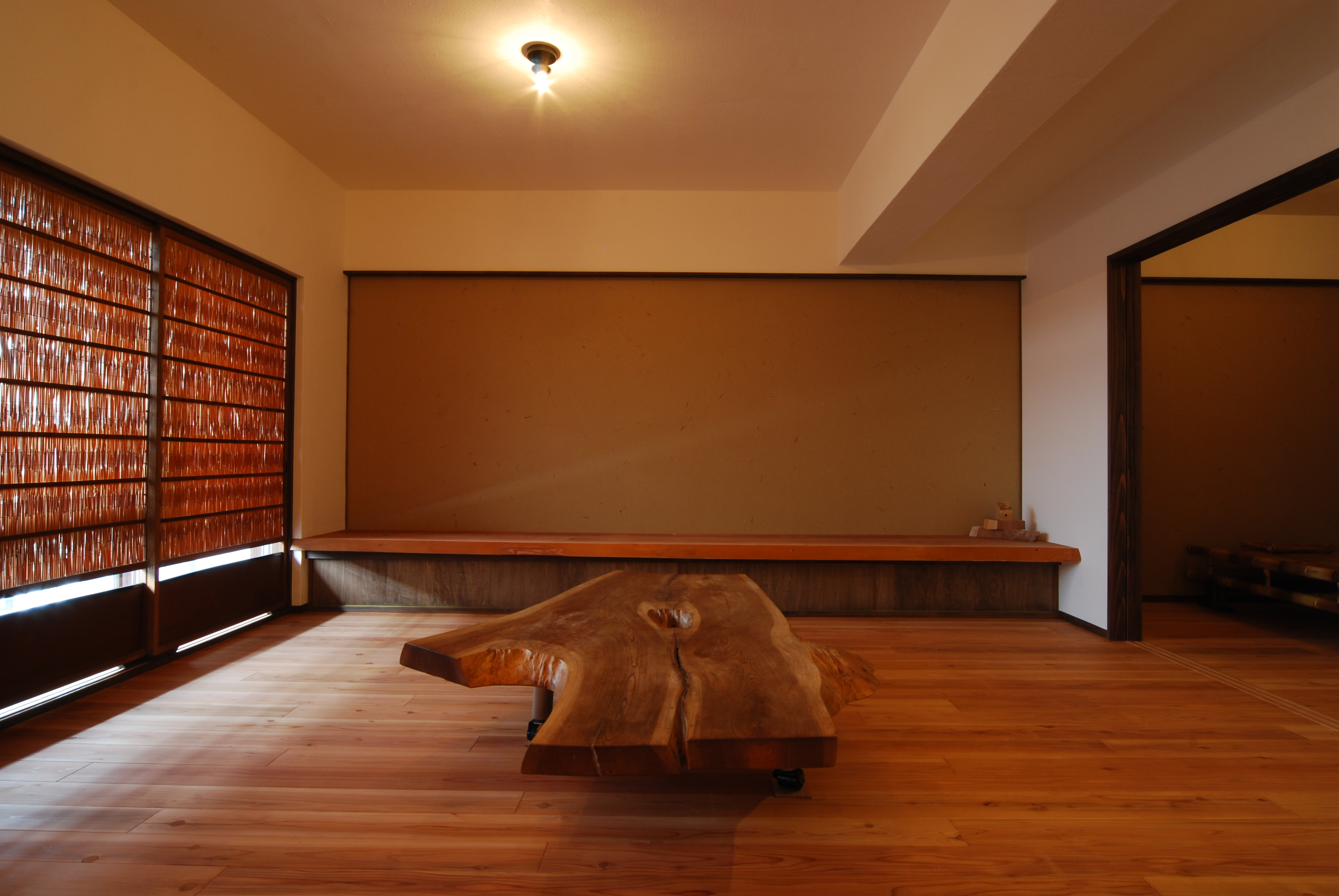 無垢の木の床・漆喰・和紙を使った
